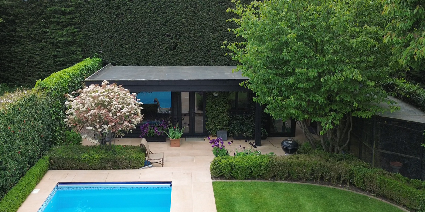The lower level toward the rear of the garden is the perfect location for a pool house with a tall conifer hedge behind creating privacy to the rear.